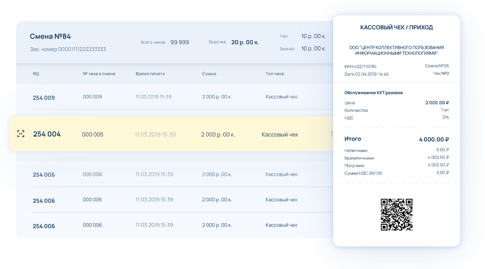 Данные для настройки кассы:
